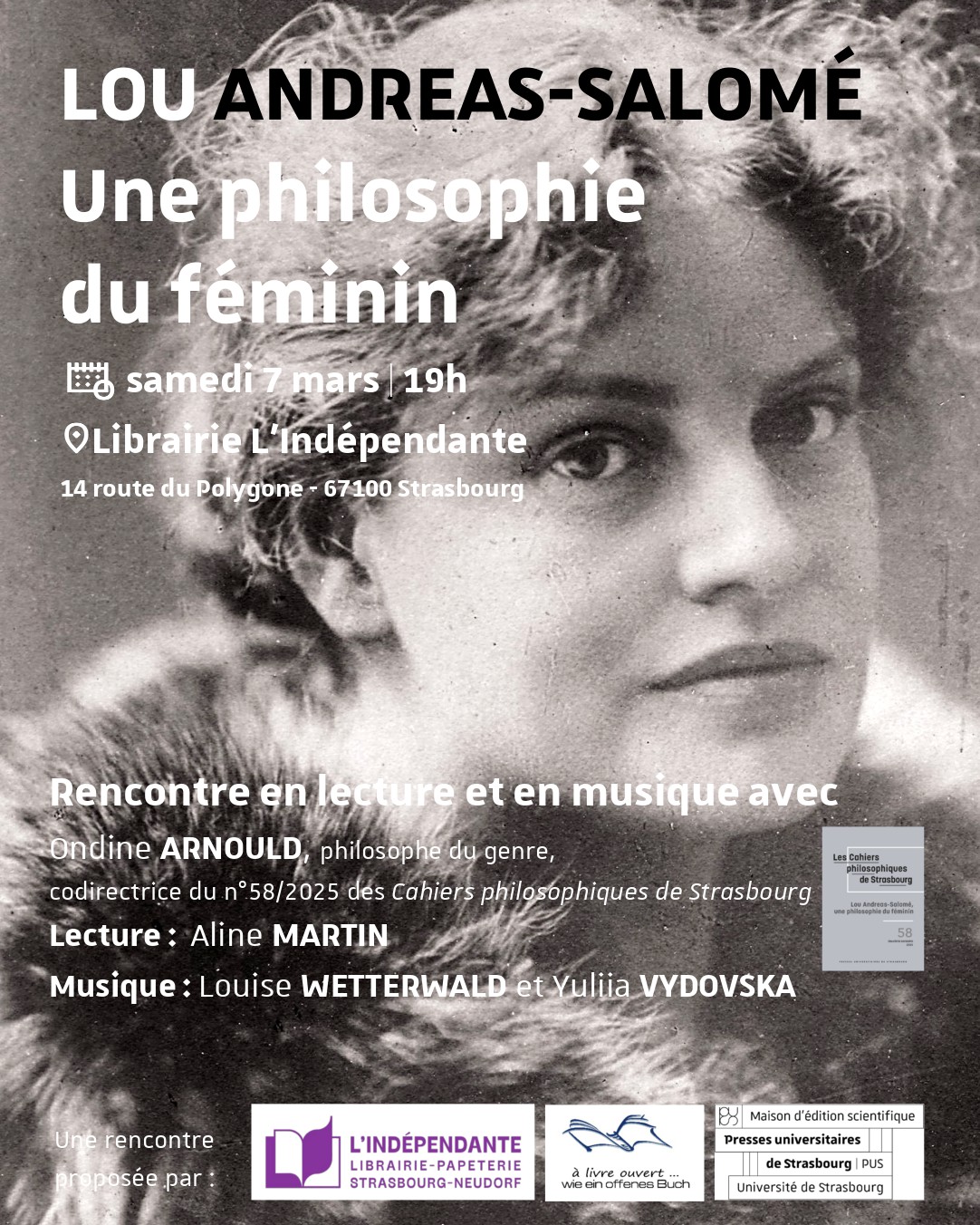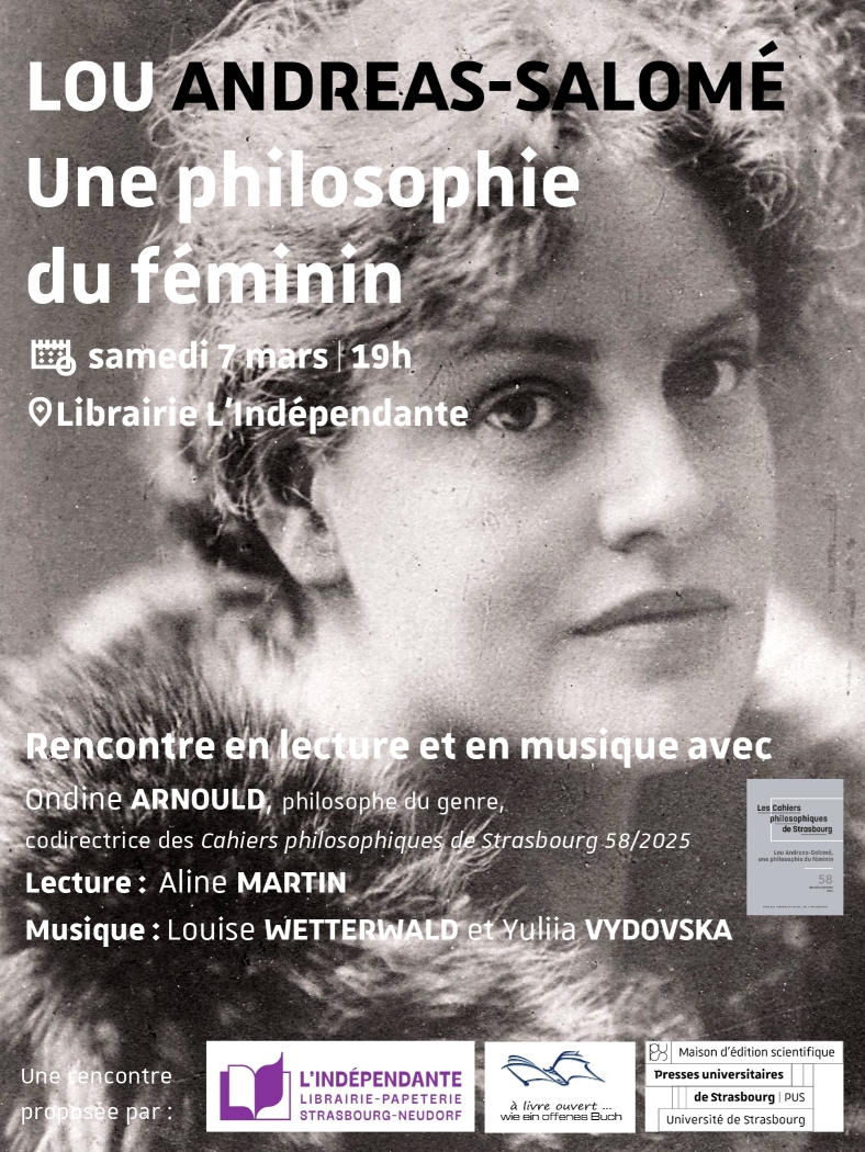 Injustement reléguée au rang d’inspiratrice, d’amante, voire de disciple de grands hommes qu’elle a pu côtoyer, tels que Nietzsche, Rilke ou encore Freud, Lou Andreas-Salomé a en réalité développé une féconde et originale philosophie du féminin. Une philosophie dessinant une troisième voie entre patriarcat traditionaliste et féminisme égalitariste qu’évoquera la philosophe du genre, Ondine Arnould, lors de la présentation du numéro des Cahiers philosophiques de Strasbourg qu’elle a codirigé.