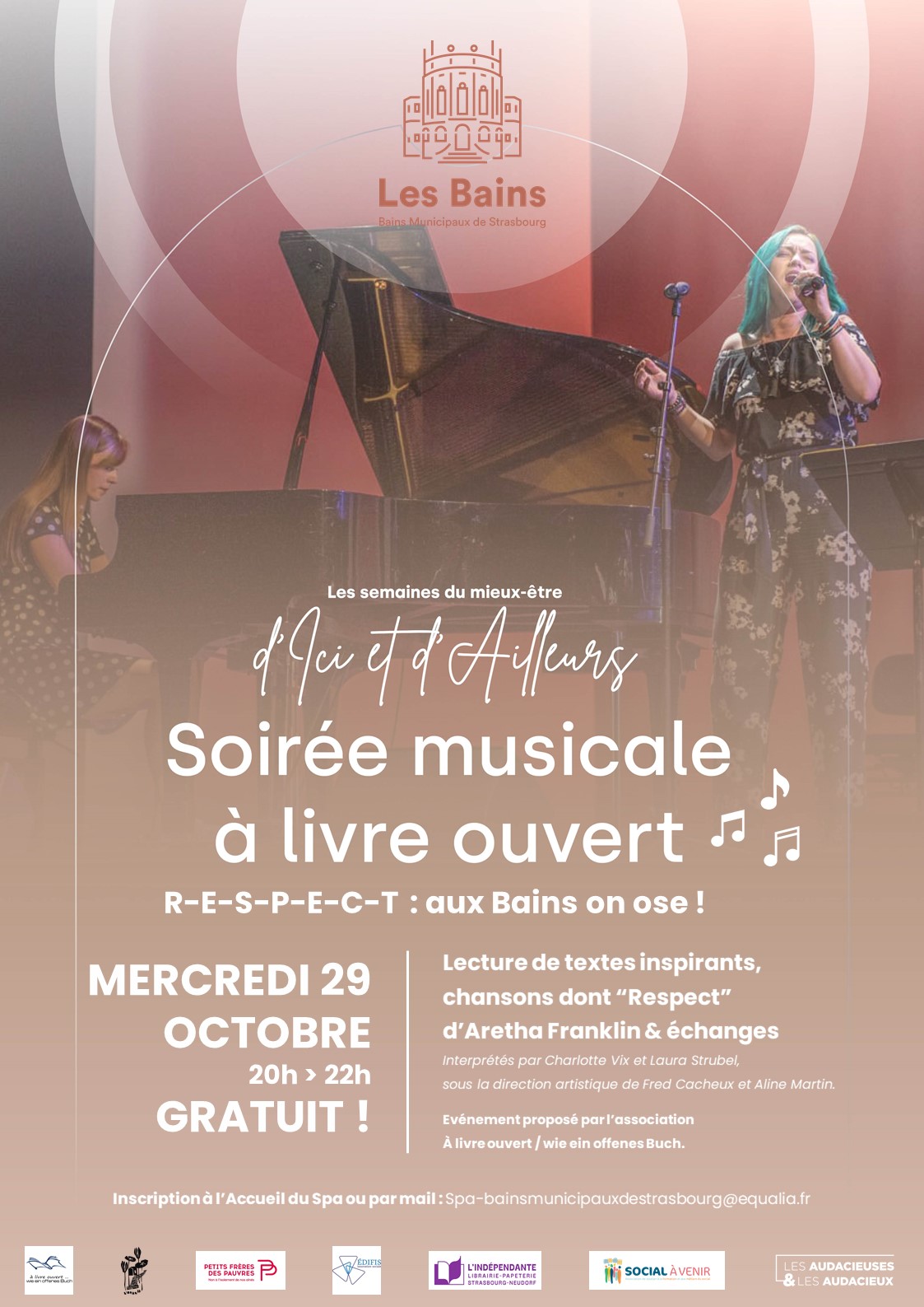 🤝 Les partenaires : À livre ouvert / wie ein offenes Buch, Les Bains Municipaux, le CSC Neuhof / EDIFIS, les Audacieux & Audacieuses, Les Petits Frères des Pauvres, l’Orée 85, Social À Venir, la Librairie l’Indépendante.